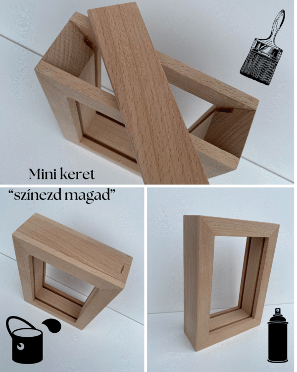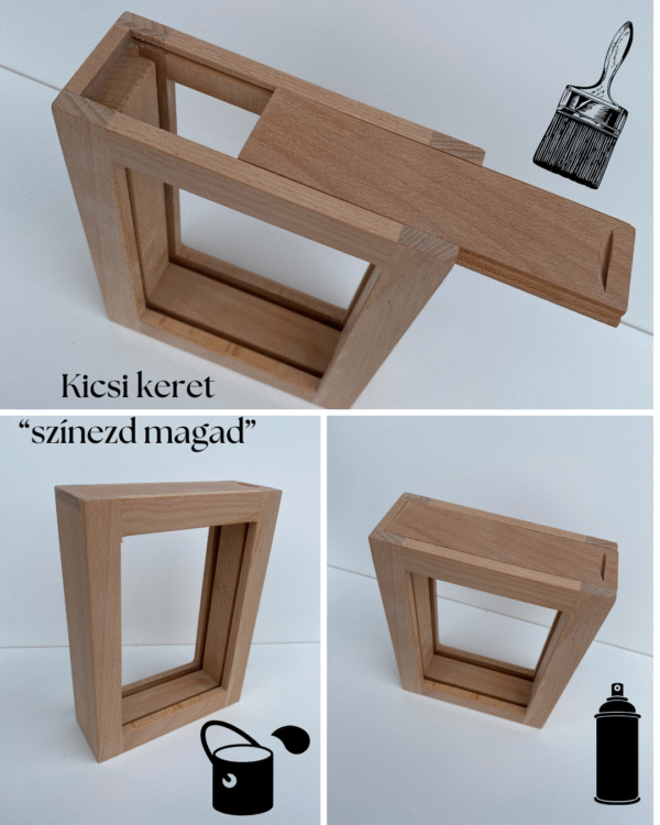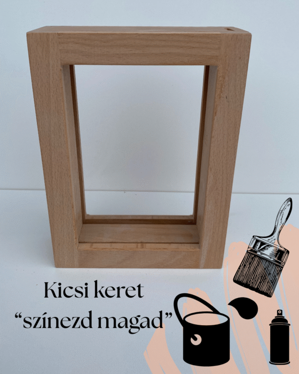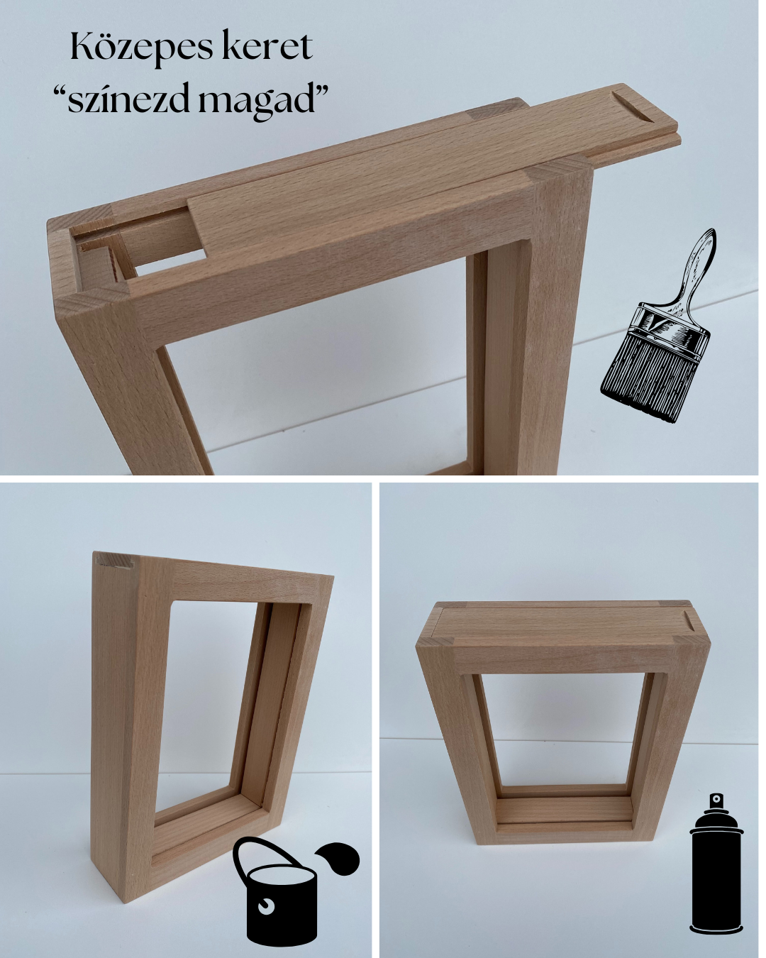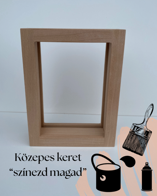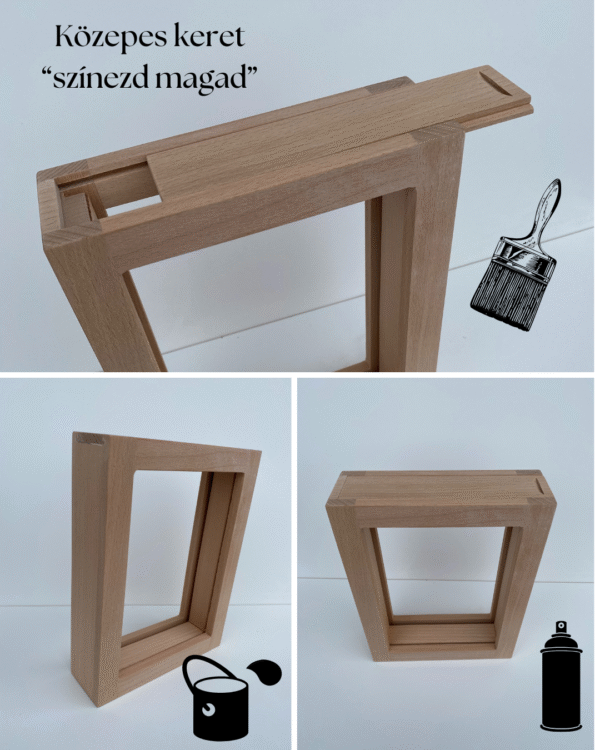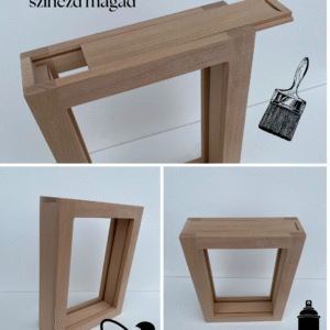 A keret natúr, nincs lefestve, így szabadon festhető, lakkozható vagy pácolható – pont olyan színt és hatást adhattok neki, ami harmonizál az esküvőtök dekorációjával.